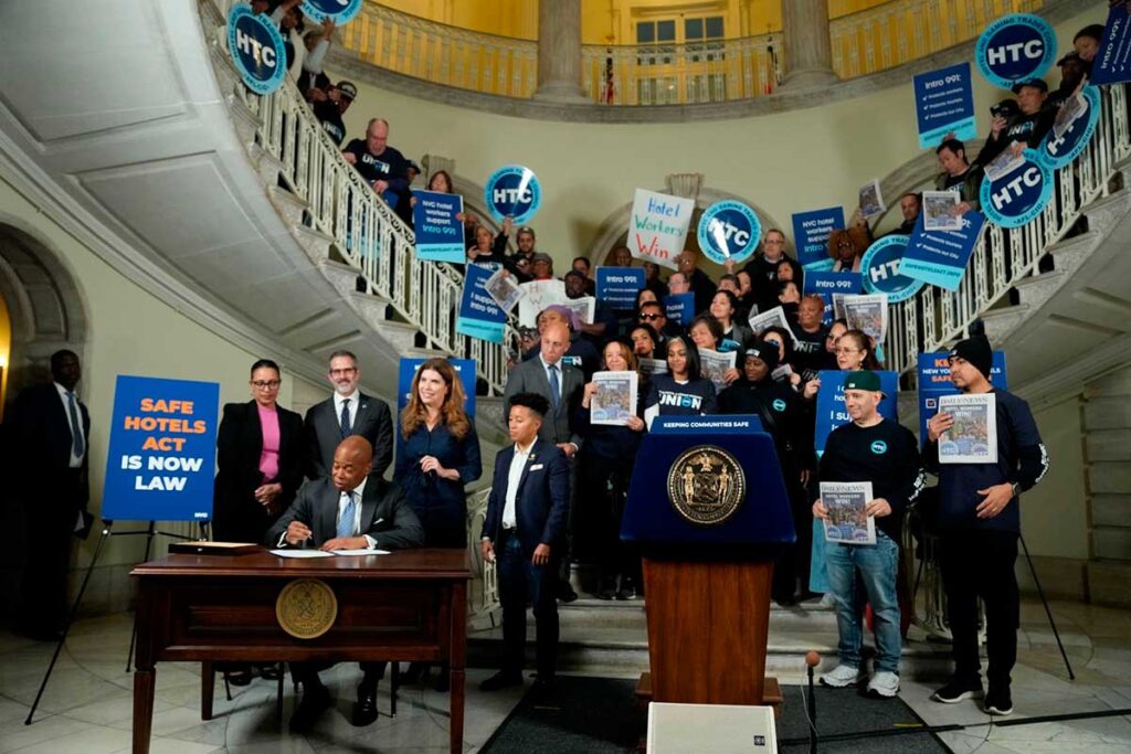 El alcalde de la ciudad de Nueva York, Eric Adams, firmó el martes una legislación para crear hoteles más seguros tanto para los empleados como para los visitantes y reforzar la industria turística de la ciudad.