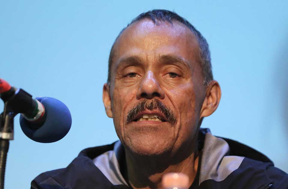 El Integrante del Congreso Nacional Indígena (CNI), Carlos González, hable en una rueda de prensa sobre las jornadas de movilizaciones en solidaridad con las comunidades zapatistas este lunes, en la Ciudad de México (México). EFE