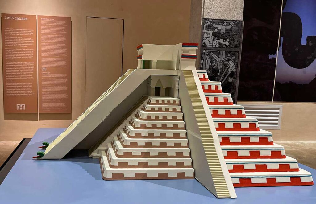 Fotografía de una maqueta de la pirámide de 'Kukulcán' que se exhibe en el Gran Museo de Chichén Itzá este lunes, en la ciudad de Mérida (México). EFE