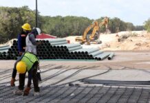 Trabajadores laboran en la construcción del tramo 4 del Tren Maya, en el libramiento Playa del Carmen, Quintana Roo (México). Imagen de archivo. EFE
