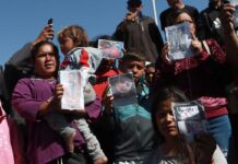 Los manifestantes colocaron una lona blanca sobre uno de los puentes peatonales cerca de la frontera de México con Guatemala.