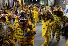 Artesanos elaboran tapetes de aserrín con distintos mosaicos...