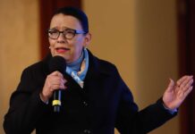 La secretaria de Seguridad y Protección Ciudadana, Rosa Icela Rodríguez, habla durante la rueda de prensa diaria de Presidencia, en el Palacio Nacional de...