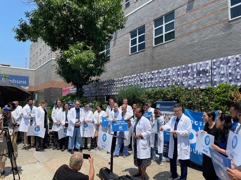 Grupos de médicos tratantes, apoyados por enfermeras, trabajadores de la salud y funcionarios electos, se reunieronel martes último en Elmhurst Hospital Center, conocido como la Zona Cero para los pacientes de COVID durante la pandemia. El propósito de la manifestación fue resaltar la crítica escasez de personal que representa una amenaza significativa para la salud y la seguridad de los neoyorquinos comunes y corrientes.