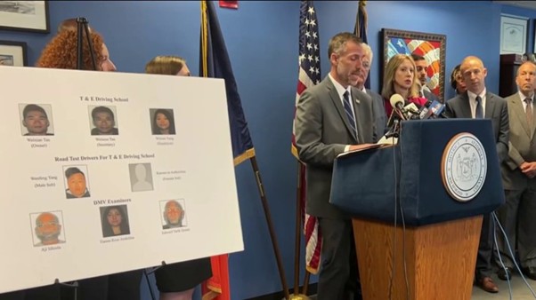 Autoridades de Staten Island y federales anuncian denuncian un caso de fraude por una red de corrupción en el DMV, que involucra a algunos trabajadores.