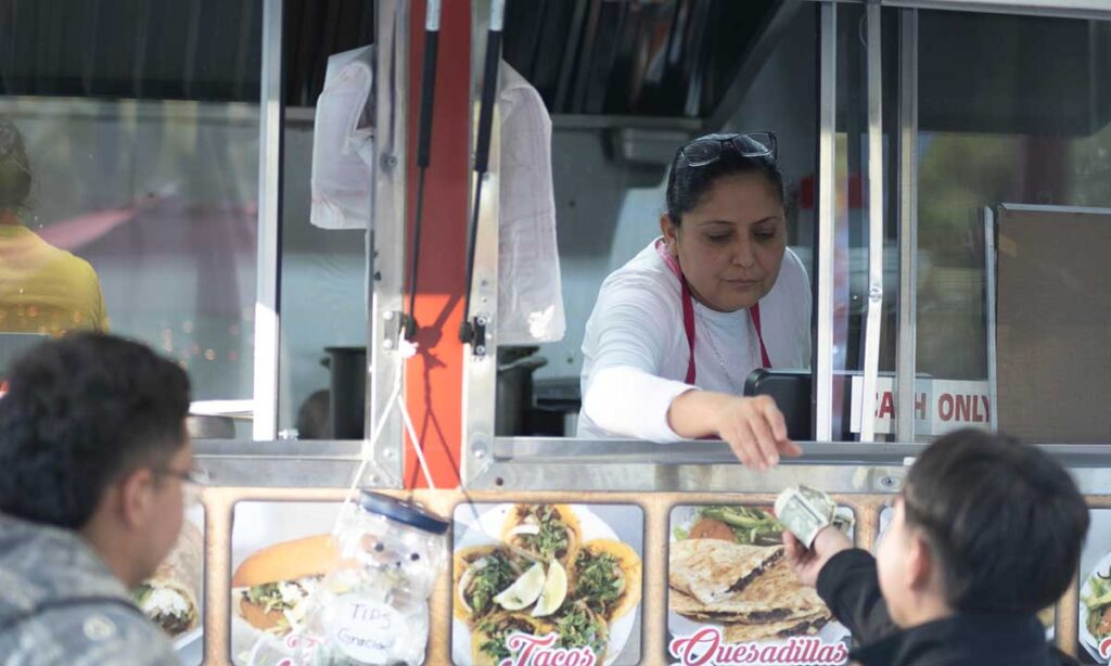 Una mujer atiende a unos clientes en el restaurante móvil donde trabaja, en el condado Liberty, al noreste de Houston, Texas. Foto: archivo EFE