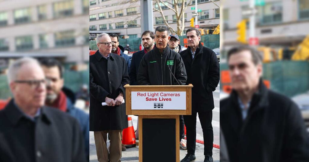 El Comisionado del Departamento de Transporte de la Ciudad de Nueva York (DOT), Ydanis Rodríguez, se unió a defensores y funcionarios electos para abogar por la aprobación de una legislación para renovar el programa de cámaras de semáforo en rojo de la ciudad, que existe desde hace 30 años, y ampliar la autoridad para operar el programa más allá de las 150 intersecciones actuales, o menos del 1% de las intersecciones señalizadas en la ciudad.
