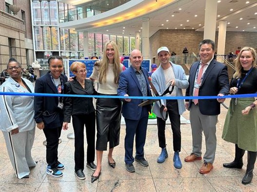 (D-I) Shelly Daniel, presidenta del Comité de Arte del Hospital Bellevue; Channing Thomas, directora de Cultura del Hospital Bellevue; Diane Brown, fundadora y presidenta de RxART; Christine Mack, fundadora de la Mack Art Foundation; el asambleísta estatal Harvey Epstein; el artista Austin Lee; el director ejecutivo del Hospital Bellevue, Dr. Eric Wei; y Larissa Trinder, vicepresidenta adjunta de Artes en Medicina de NYC Health + Hospitals. Foto: NYC Health + Hospitals