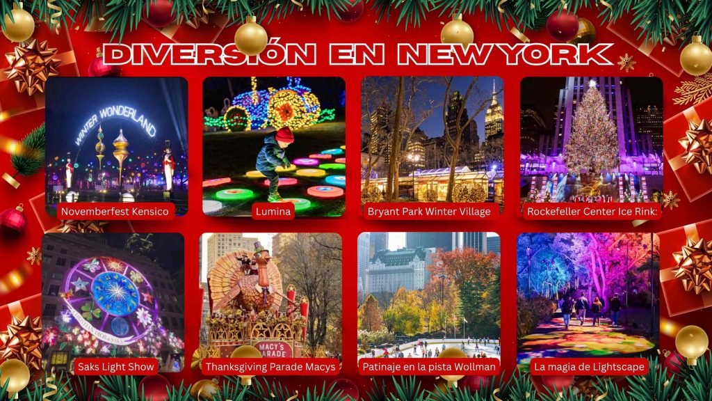 La magia de la temporada llega con espectáculos de luces, pistas de patinaje, mercados navideños y actividades para toda la familia. Desde el icónico desfile de Macy’s hasta experiencias únicas como Lightscape en el Jardín Botánico y el Winter Village en Bryant Park, estas opciones te permitirán vivir momentos inolvidables. ¡Descubre las fechas y lugares para planificar tu visita!