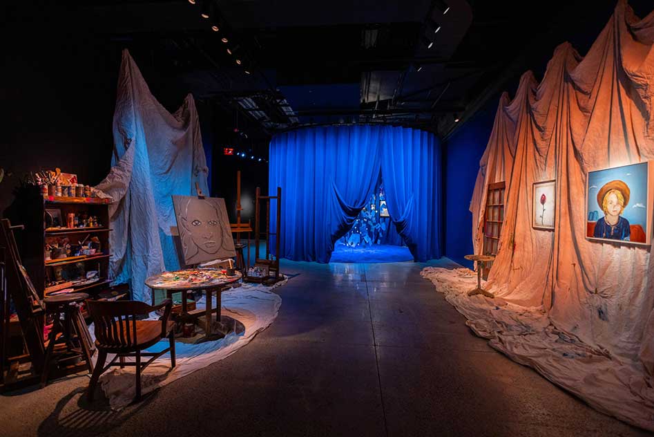 Los espectadores tienen acceso en esta muestra al estudio de arte de Depp, en el que el artista tiene colgados en la pared varios cuadros dedicados a su familia -una rosa por su hija Lily Rose-Depp y un autorretrato de su hijo Jack- y a personas cercanas como el actor Marlon Brando.