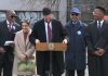El ejecutivo del condado George Latimer, junto a funcionarios y oficiales electos durante la inauguración de la vía para caminar y hacer ciclismo, a lo largo del Bronx River Parkway.
