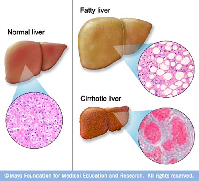 Con el tiempo, las afecciones que dañan el hígado pueden provocar cicatrices (cirrosis), que pueden conducen a insuficiencia hepática, una afección potencialmente mortal. Pero el tratamiento temprano puede dar al hígado Es hora de sanar.