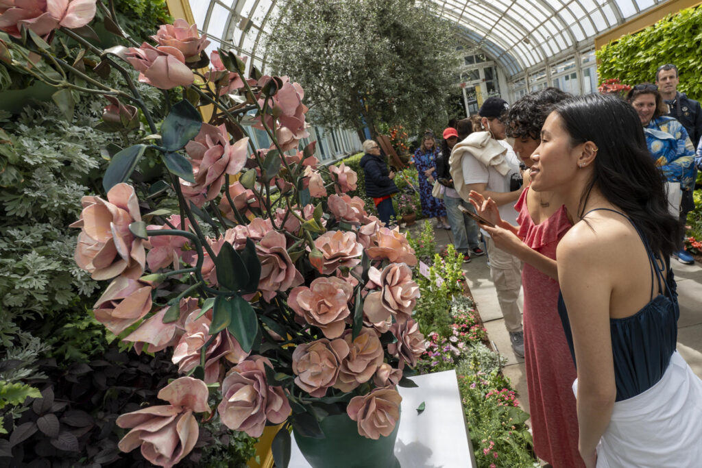 “Ya han visto los cuadros, ahora véanlos cobrar vida en el jardín”, anunció una de las organizadoras este martes antes de abrir las puertas del Haupt Conservatory, donde se encuentran tres salas en las que se combinan esculturas, flores y los cuadros del holandés que inspiraron la exposición.