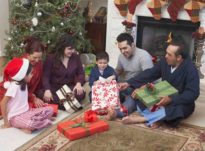 El 24 de diciembre no es feriado aquí en los Estados Unidos, sino el día 25, cuando las familias se juntan a celebrar y a disfrutar de deliciosos platillos para esta gran festividad. Sin embargo, en la mayoría de los lugares de trabajo se celebran las fiestas navideñas y los comercios están abiertos hasta las últimas horas de la noche para permitir que el público compre los regalos para sus seres queridos.