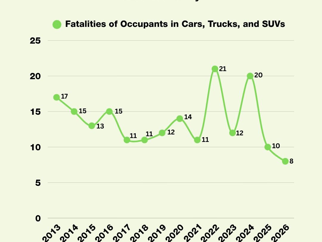 Los datos del NYC DOT, publicados hoy, muestran una drástica disminución interanual del 20% en las muertes por tráfico que involucran tanto a peatones como a ocupantes de vehículos motorizados. En lo que va del año se han registrado 42 fatalidades, la tercera cifra más baja hasta la fecha desde que se comenzaron a recopilar estos registros en 1910; solo en los años 2015 y 2018 se registraron menos muertes por tráfico en este punto del año.