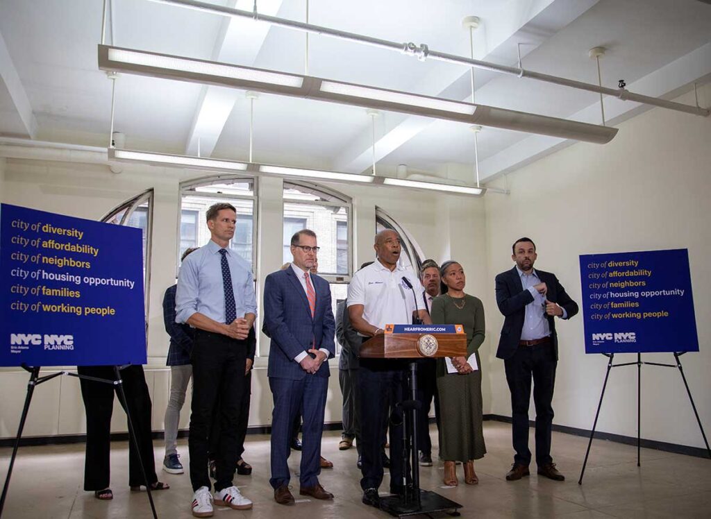 El alcalde Eric Adams presenta un plan para rezonificar un área de la ciudad para permitir habilitar viviendas