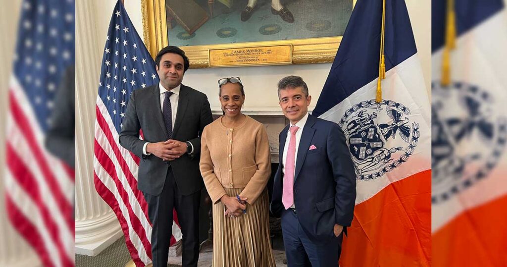 El comisionado de Salud, Doctor Ashwin Vasan, la vicealcaldesa de salud y servicios humanos, Anne Williams-Isom, y José Bayona, director de la Oficina de Medios Étnicos de la Alcaldía de Nueva York, luego de la mesa redonda con la prensa. Foto: NYH