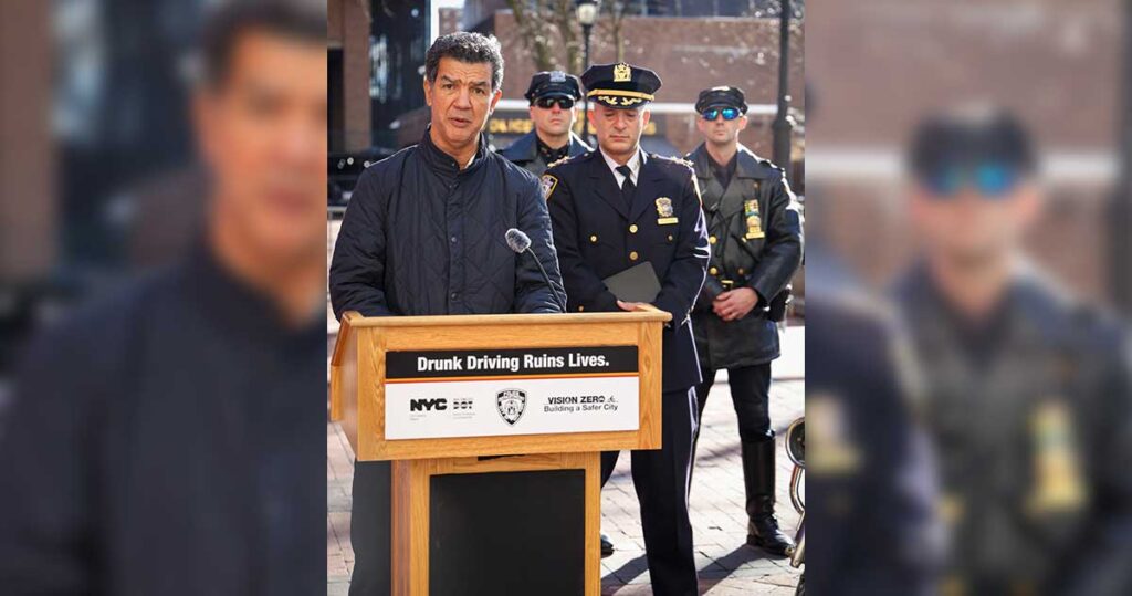 El Departamento de Policía de la Ciudad de Nueva York (NYPD), el Departamento de Transporte de la Ciudad de Nueva York (DOT), la Comisión de Taxis y Limusinas de la Ciudad de Nueva York (TLC) y el Departamento de Salud e Higiene Mental (DOHMH) anunciaron hoy frente a One Police Plaza importantes iniciativas para combatir el exceso de velocidad y la conducción en estado de ebriedad de cara a la temporada navideña